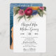 This wedding invitation features elegant blue, pink, dark pink, and orange in a chalk pastel style. It is a bold, floral, and modern-looking invitation to celebrate your special day.
