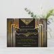 Wedding invitation ceremony, great-Gatsby, black & gold, recto-verso