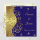 Wedding Invitation--Dark Blue & Gold Swirls Invitation