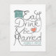 Wedding invitation design to save the date for a special occasion. Fun letters with additional design elements saying: Eat drink and be married. Heart shape is included to emphasize romance.