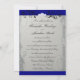 Celebrate your wedding day with this beautiful and elegant slate grey and navy blue plaque and floral wedding invitation. This classy and elegant wedding invitation features a vertical ribbon anchoring a beautiful silver metallic oval plaque with gorgeous floral and leafy swirls adorning the edges along with beautifully cut diamonds. This design has a vintage style cloth textured background with a textured border and shadowed floral swirl overlay. These invitations are perfect for weddings, retirement parties, anniversary parties, dinner parties, graduation ceremonies, birthday parties, galas, Christmas and New Year's parties, and more.