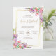 wedding invitation Golden frame pink flowers