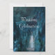 Romantic rustic country mountain waterfall in blue wedding invitation.