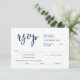 This is the beautiful Modern Romantic RSVP (Respond) Enclosure Card, in classy Navy Blue font, where you can edit, change colour and format it as per your design requirement, with meal options, reserved seats, number attending and song request option.