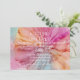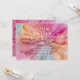 Silk Flowers, wedding invitation painted in shades of blue, orange and pink.