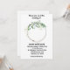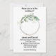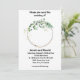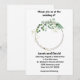 A wedding invitation with a flowered circle. The name of the bride and groom; the place where the wedding takes place; reception following on the bottom.