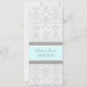 Wedding invitation cards in elegant and romantic light pastel turquoise blue, grey and white classic floral damask pattern. Customize these invitations with your wedding details. Available in matching products for all of your wedding needs.