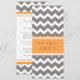 Wedding invitation cards in elegant and contemporary charcoal grey, tangerine orange and white retro and casual chevron zigzags stripes pattern. Customize these invitations with your wedding details. Available in matching products for all of your wedding needs.