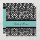 Wedding invitation cards in elegant turquoise blue, black and white classic floral damask pattern. Customize these invitations with your wedding details. Available in matching products for all of your wedding needs.