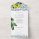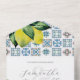 Elevate your wedding celebration with our exquisite wedding invitations accompanied by an RSVP card, showcasing the beauty of botanical watercolor lemons in delightful shades of yellow, complemented by a captivating blue and rust Amalfi tile pattern. Whether you prefer the convenience of seal and send or the classic elegance of folded marriage invites, these are the perfect choice for your special day.