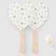 These fans were exactly as pictured. The quality is great. Perfect favor for a wedding!...I will make assembly a little easier by using a hot glue gun and finish them off with a ribbon. Beautifully printed. Crisp and clear text.