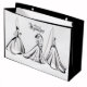 Wedding-themed gift bag featuring elegant illustrations of brides. The bag showcases a black and white design with the word "Wedding elegantly displayed at the top.