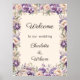 Greet your guests with this elegant Watercolored Lavender Wedding Welcome Poster. The design features a delicate watercolor purple lavender blooms against a soft cream, champagne colored arch background. This poster is perfect for directing family and friends at an outdoor summer garden ceremony.