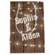 Wedding Lights On Wood With Names Medium Gift Bag