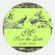 WEDDING LOVE BIRDS MONOGRAM black and white green Classic Round Sticker