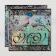 WEDDING LOVE BIRDS MONOGRAM Black Aqua Blue Floral Invitation
