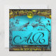 WEDDING LOVE BIRDS MONOGRAM black yellow turquoise Announcement