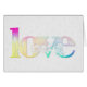 Rainbow LOVE floral text on embossed white background for newlywed congratulations.