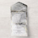 All in One Wedding Invitation - Elegant gold and shades of grey and black alcohol ink stains accented with gold veins like you would see in a beautiful marble geode - all in one wedding invitations with pre-addressed detachable meal choice rsvp - The guest now is able to fill out the rsvp, detach it from the invitation and mail back to you using the pre-addressed -return address postcard. Easy Peasy - You can also mail it using the envelopes included - if this choice is chosen, you can easily just remove the pre-address and still have a beautiful invitation. - Easy to customize template.