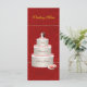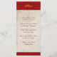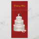 Wedding cake with the couples names & date on a red velvet background. Menu on the back side