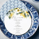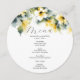 This wedding menu card features a top boarder of watercolor hibiscus flowers in shades of yellow. The card reverses to reveal a watercolor ornate pattern. Use the template fields to DIY your personalized details. The round design is a charming choice for tropical garden and elegant wedding themes. To see more custom wedding dinner menus and ideas like this visit www.zazzle.com/dotellabelle
