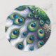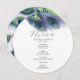 This wedding menu card features a top boarder of watercolor peacock feathers in shades of royal blue, purple and green. The card reverses to a matching peacock feather pattern. Use the template fields to DIY your personalized details. The elegant round design is a charming choice for garden and boho wedding themes. To see more custom wedding dinner menus and ideas like this visit www.zazzle.com/dotellabelle