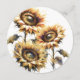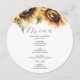 This wedding menu card features a top boarder of watercolor sunflowers in shades of golden yellow and browns. The card reverses to reveal more sunflowers. Use the template fields to DIY your personalized details. The rustic round design is a charming choice for garden and boho wedding themes. To see more custom wedding dinner menus and ideas like this visit www.zazzle.com/dotellabelle