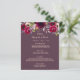 An elegant bohemian boho style wedding menu card. Lush watercolored roses, in pink and burgundy. Templates for your names, date and the wedding menu. Cassis background on front, cassis, deep purple on back. Golden coloured letters.