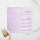 Wedding meal menu in elegant lavender swirls pattern, customizable with your details and available in matching wedding products.
