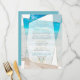 Beach Wedding Menu | Modern Monogram Geometric Beach Wedding | A modern twist on the Beach Wedding - Unique Wedding designed for theBarefootBride™ by ©WhimsicalArtwork™ features an offset terrarium style geometric shape with varying transparencies in the facets to allow the Tropical Ocean Beach background to show through in a variety of shapes and intensities. A Playful approach of typography in the text - with Bride and Groom first name initials surrounded by a laurel wreath on top - in two colours (teal and gold) - followed by coordinating serif fonts in muted grey blue green (picked up from the ocean) teal (picked up from ocean waves in the background) and gold lettering. The wedding details clean and simple on the front only of the invitation - a coordinating teal colour on back. All Text Including font styles and colours are customizable - if you need help please feel free to contact me.