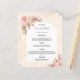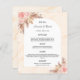 An elegant bohemian boho style wedding menu card. Personalize and add your names, date and the wedding menu. Golden marble print as background. Decorated with blush pink florals and pampas grass.