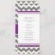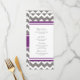 Wedding dinner menu in elegant dark eggplant purple, grey and white with fun retro chevron zigzags pattern, customizable with your details and available in matching wedding products.