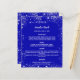 A classic wedding menu. A royal blue background. White text. Decorated with faux silver glitter, sparkles. Personalize and add your name, date and the menu.
