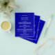 A classic wedding menu. A royal blue background. White text. Personalize and add your name, date and the menu.