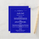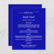A classic wedding menu. A royal blue background. White text. Personalize and add your name, date and the menu.
