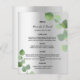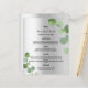 Personalize and add your names, date and the wedding menu. Faux silver metallic looking background, decorated with eucalyptus greenery, sprigs.