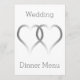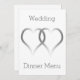 Wedding menu silver coloured hearts design. You can customise this silver coloured wedding menu with your wedding details. Should you require any help with customising then please contact us through the link on this page. Silver coloured hearts design personalised wedding menu