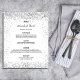 An elegant, glamorous wedding menu card. Personalize and add your names, date and the wedding menu. A chic white background, decorated with faux silver glitter sparkles.