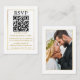 Modern Minimalist Simple Wedding RSVP Card with your QR Code. Gold Frame. Black & White with Gold Text. Photo Back.