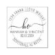 Elevate your wedding correspondence with our exquisite Wedding Monogram Calligraphy Script Return Address self-inking stamp. This personalized stationary stamp combines the timeless charm of calligraphy script with modern design elements, creating a stunning accessory for your wedding invitations and correspondence. The round self-inking stamp features an elegant wedding return address, adding a touch of sophistication to every envelope.