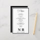 Each menu is meticulously crafted with a classic white backdrop, adorned with a sleek black wedding monogram that adds a touch of timeless elegance. Personalized with your names and event details, this menu becomes a cherished keepsake of your special day, setting the tone for an unforgettable celebration.