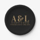 Wedding Monogram Minimalist Black Gold Paper Plate