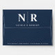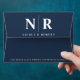 Crafted with sophistication, these custom envelopes feature a classic navy blue exterior complemented by a crisp white interior. The personalized monogram of the bride and groom adds a touch of elegance, making each envelope a bespoke piece of your wedding suite.