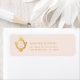 An elegant pink and gold design with a vintage air, with a wedding monogram from the 2 initials of the bride and groom, in a vintage faux gold foil crest, before the name and address, written in golden caps. The background is blush pink.