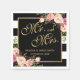 Wedding Mr. and Mrs. Floral Gold Frame with Black White Stripes Paper Napkin.