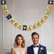 Wedding Navy Blue Faux Gold Hearts Mr. & Mrs. Name Bunting Flags