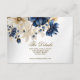 Wedding Navy Blue White Golden Floral Silver Enclosure Card