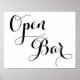 Wedding Open Bar Sign Black And White