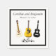 Bride and Groom personalized wedding or engagement party design, with acoustic guitars and musical notes and a black border. Wording can be customized for any occasion or event. Fun for any band member, music fan, or guitarist. Just add names and event name and date if desired. Or for a bachelor party just add the groom's name, and the date or leave that out. Fun for the food or appetizer table or for the cocktail bar. Available in several paper napkin sizes.