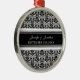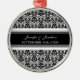 Customizable wedding ornament in elegant and modern black and white classic floral damask pattern. Perfect as a christmas keepsake to remember your special day or celebrate your first christmas or as personalized wedding favours.